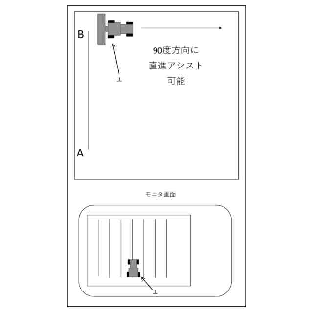 畦方向と平行である第一走行ライン方向および第二走行ライン方向が、直進走行アシストにおける走行ラインを決定するために設定され、