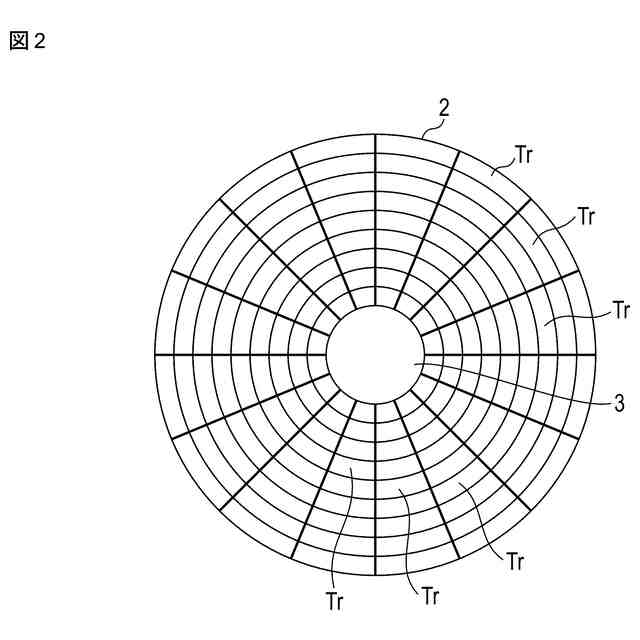 前記第2データは、前記ユーザデータに対する誤り検出と訂正を前記トラックごとに行う誤り訂正符号である。