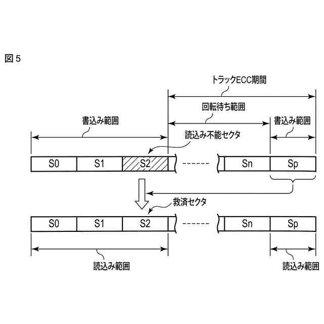 図5は、図4の各セクタに対するデータの読込み範囲を示しかつ読込み不能なセクタのデータが誤り訂正符号で救済される様子を示す図。