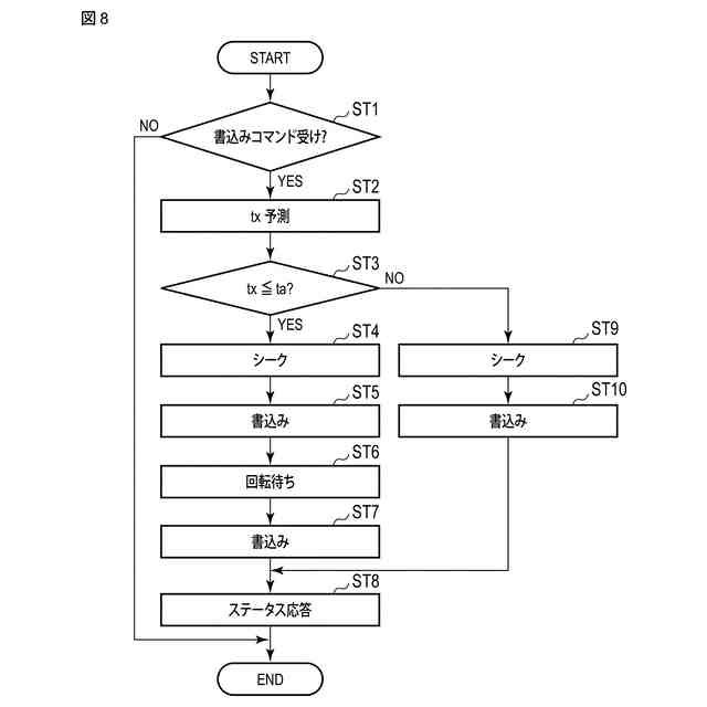 【解決手段】磁気ディスク装置は、第1データおよび第2データを磁気ディスクに書込む第1書込制御と、上記第1データを上記磁気ディスクに書込む第2書込制御とを備え、書込みコマンドを受けた際に、上記第1書込制御の処理開始から処理終了までに要する時間を予測し、その予測時間と予め指定される制限時間との比較により、上記第1書込制御の処理および上記第2書込制御の処理のいずれか一方を選択的に実行する。
