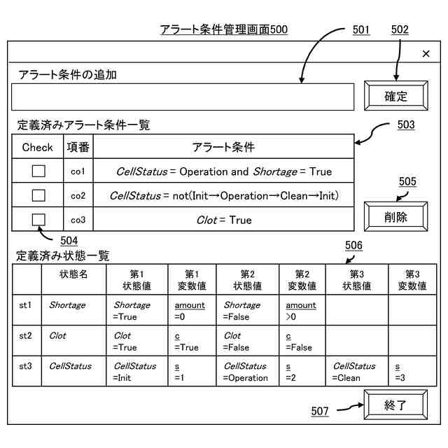 前記アラート条件管理画面は、1つまたは複数の前記状態値を用いて新たな前記アラート条件を定義するためのユーザインターフェースを提供するものであり、