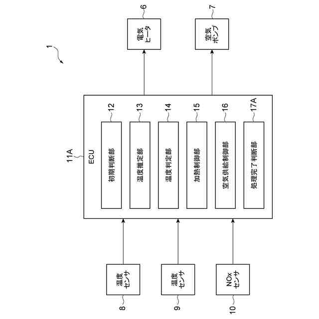 の量が規定量以下でないと判断されたときに、第2触媒5への空気の供給を行うように空気ポンプ7を制御する空気供給制御部16とを備える。