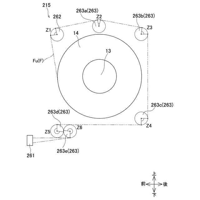 さらに、ボビン支持軸と支点ガイドとの間には、繊維束が巻き付けられるとともに、巻き付けられた繊維束がトラバースに伴って捻転することを抑制する捻転抑制ローラ(特許文献1の補助ローラ)が配置されている。捻転抑制ローラは、ボビン支持軸の軸方向と平行な軸心を有し、繊維束が捻転抑制ローラの周面上を捻転抑制ローラの軸方向にトラバースされるように構成されている。ボビンから解舒されて支点ガイドに向かう繊維束は、捻転抑制ローラに巻き付けられた状態でトラバースされる。これによって、繊維束の張力が繊維束を捻転抑制ローラに押し付ける方向に作用し、繊維束の捻転が抑制される。