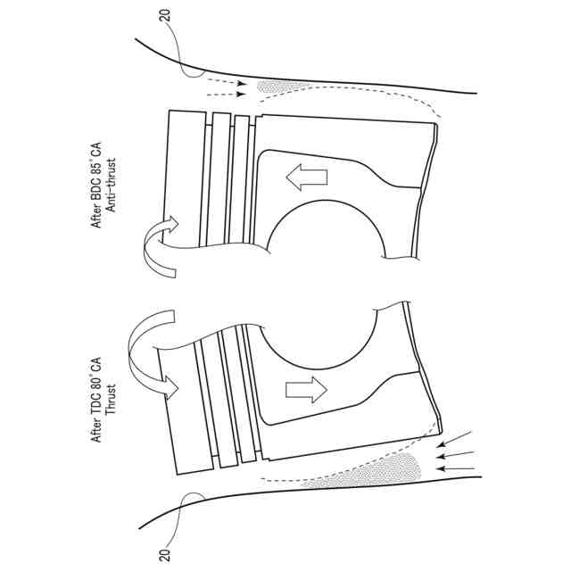 一般的に、ピストンのスカートのプロファイルはスラスト側と反スラスト側で対称な形状となっている。ピストンの上昇行程ではピストンの姿勢の影響により反スラスト側に油膜が形成されづらく、下降行程よりも上昇工程の方がピストンスカートに生じる摩擦損失が大きくなる。そのため、摩擦損失の増大を回避すべくピストンスカートの上部のプロファイルを内側に入れ、径を小さくすると、ピストンの二次運動が増大し、スラップによる騒音性能が悪化する。