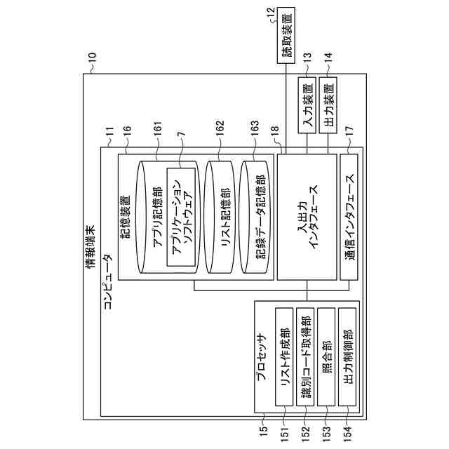 【解決手段】コンピュータプログラムであるアプリケーションソフトウエア7は、器具を洗浄又は滅菌する処理器の第1識別コードを取得することと、処理器に提供される物品の第2識別コードを取得することと、第1識別コードと第2識別コードとの組み合わせを示す読取データと、処理器と物品との組み合わせの一覧を示す第1リスト及び第1リストとは異なる組み合わせの一覧を示す第2リストのそれぞれとを照合することと、読取データと第1リストとが一致する場合、第1出力データを出力装置14に出力させることと、読取データと第2リストとが一致する場合、第2出力データを出力装置14に出力させることと、をコンピュータ11に実行させる。