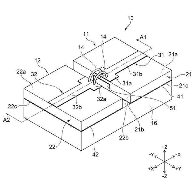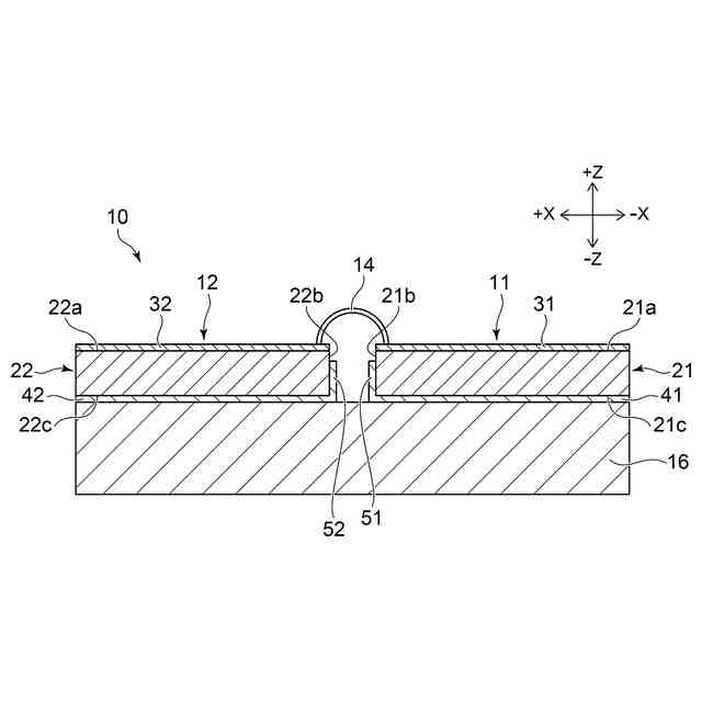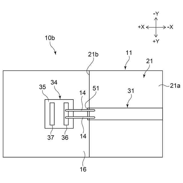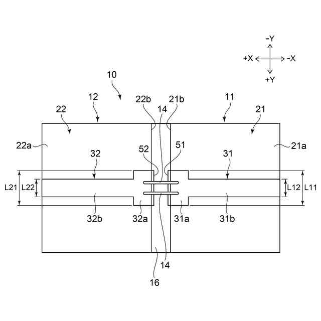 第1基板部11は、第1基板21と、第1伝送線路31(伝送線路)と、を有する。第1基板21は、第1方向を向く第1表面21aと、第1方向と直交する第2方向を向く第1側面21bと、を有する。また、第1基板21は、例えば、第1方向と反対の方向を向く第1裏面21cをさらに有する。第1裏面21cは、換言すれば、第1表面21aと反対の方向を向く面である。