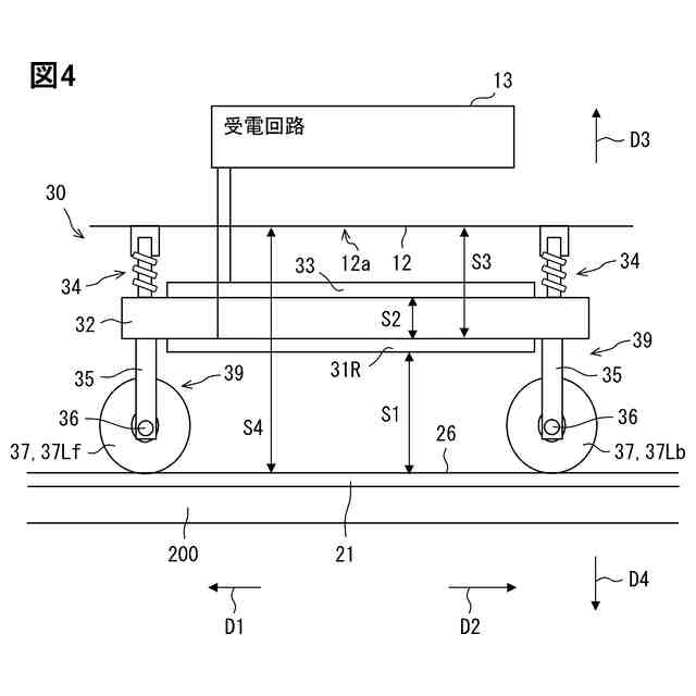 特許文献1に記載の搬送装置では、床表面にうねりや段差がある場合に、受電電極と送電電極との間隔が変動してしまい、受電電極と送電電極との間の送電効率が変動する課題があった。