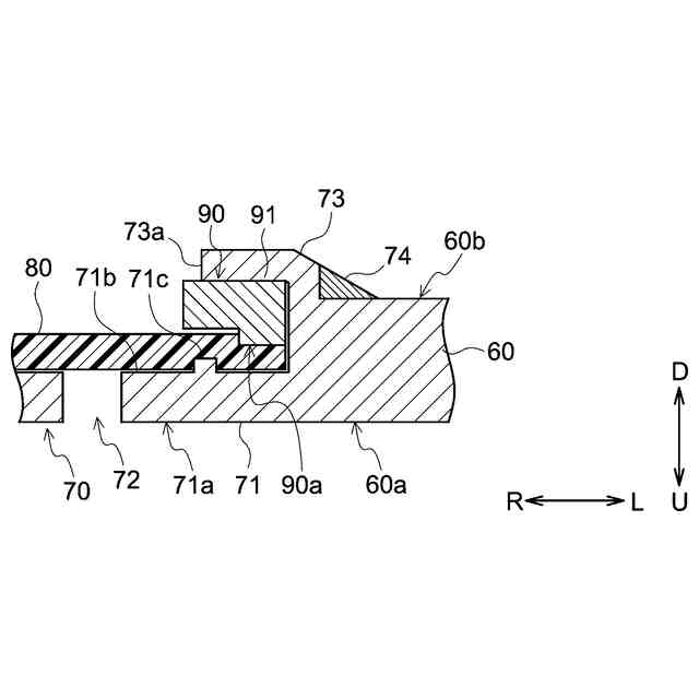 前記張り出し部は、前記カシメ爪に対向する面に凸部を有しており、