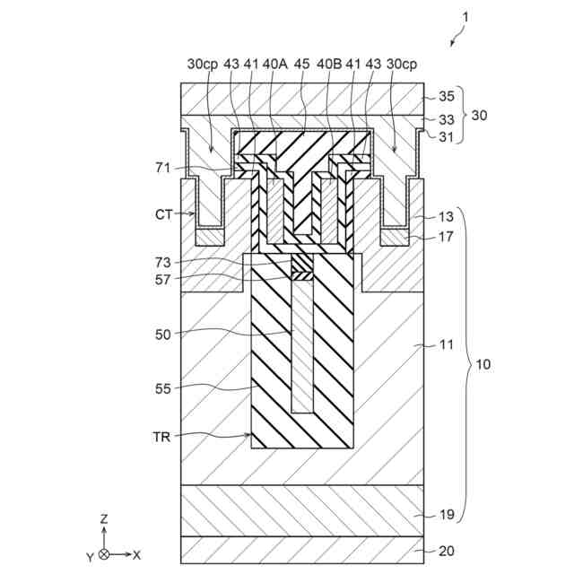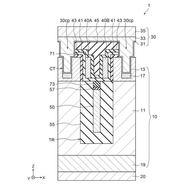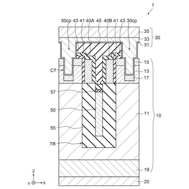 図1は、第1実施形態に係る半導体装置1を示す模式断面図である。半導体装置1は、例えば、MOSFETである。半導体装置1は、トレンチゲート構造を有する。半導体装置1は、半導体部10と、第1電極20と、第2電極30と、制御電極40と、第3電極50と、を含む。半導体部10は、例えば、シリコンである。