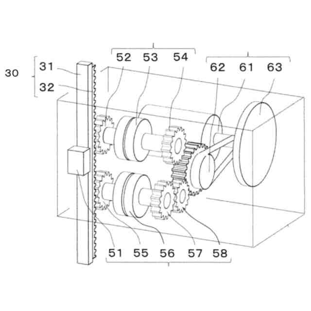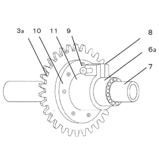 この構成では、一方向クラッチとピニオンが一体となって増速機構の第1段の軸に回転トルクを伝達できる。
