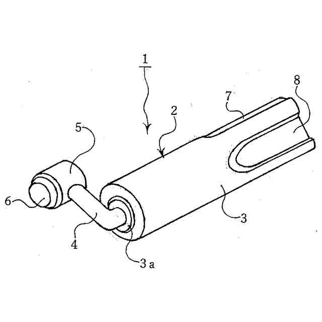 (リ)前記胴体部(3)の前記結合部(3a)底面に、前記腕部(4)を設けて前記腕部(4)の先端に前記操作部(6)を設けた前記基台部(5)を設ける種類と、前記腕部(4)を無くして前記結合部(3a)底面と前記基台部(5)上面を直接結合させて、前記胴体部(3)と前記基台部(5)と前記操作部(6)が一本状になるように設ける2種類があり、どちらかを選択して設ける。図5と図6参照。