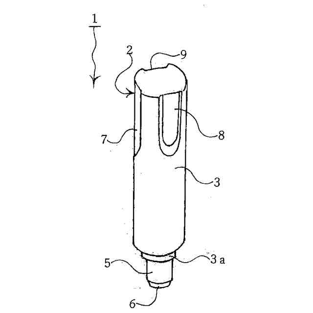 (イ)小さな一般的な印鑑のような円柱状の胴体部(3)を備えた指代替具本体(2)である。