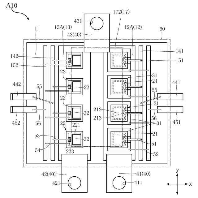 図35は、本開示の第3実施形態にかかる半導体装置の平面図であり、封止樹脂および被覆層を透過して示している。