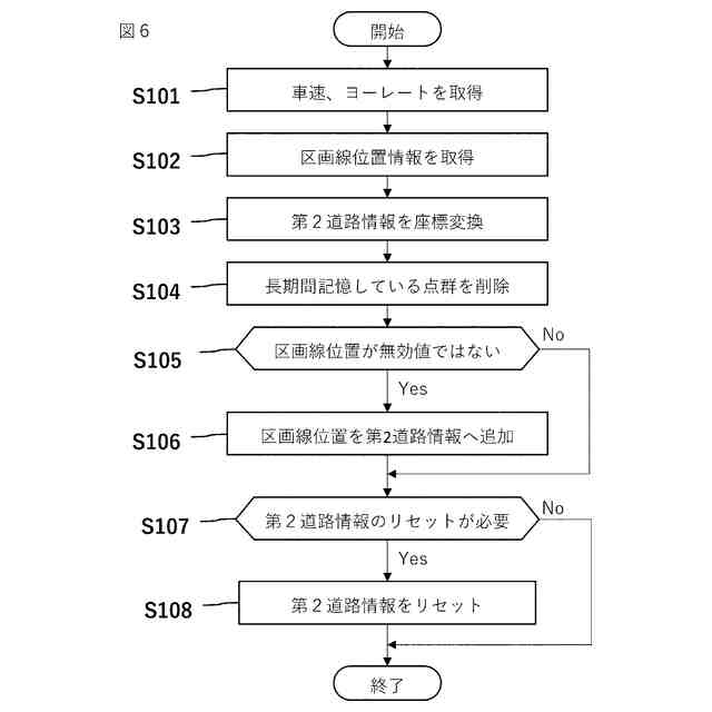 比較用道路情報は、経時的に取得された自車両近傍の左右区画線位置情報と、自車両の車速およびヨーレートの情報を含む車両状態量に基づいて取得する。