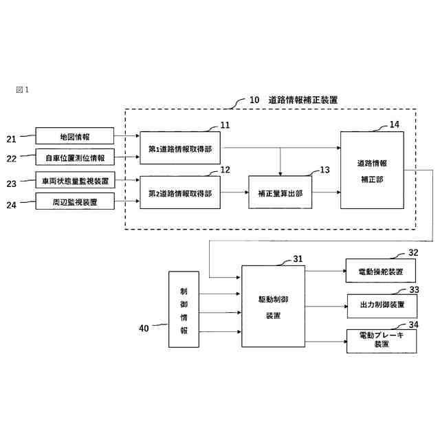 【解決手段】第1道路情報と比較用道路情報に基づき、自車両位置に対する道路情報の補正量を算出するものにおいて、