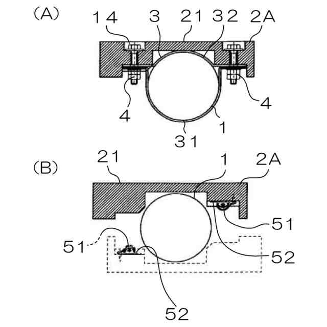 従来のボラードとして、車等の衝突によって破損しても、支柱全体を交換する必要をなくすため、地中に垂直に取り付けられる柱状車止め本体(芯材)と、前記車止め本体の周囲に個別に着脱可能に取り付けられる複数片のカバーとからなるものが開示されている(例えば、特許文献1参照)。