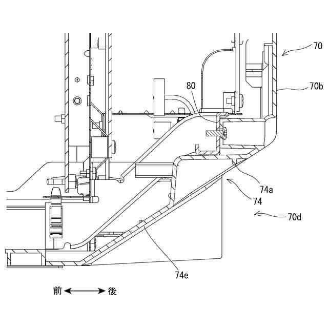 第2の開示は、第1の開示に従属し、窪み部の天面は、後方に向かって上り勾配となる傾斜面を有し、第2把持部は、傾斜面に設けられている。
