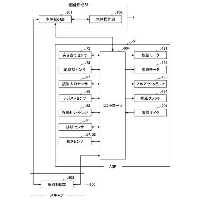 複写機等に用いられる原稿搬送装置(ADF)に、例えば、ステープル綴じされた原稿などのように正常な搬送ができない原稿がセットされる場合が有る。このような場合に、原稿搬送装置の動作時の音により正常な搬送ができない原稿であること判定して、搬送を停止することで、搬送異常の発生に伴う原稿の破損(シワ、破れ)を回避する機能を有する原稿搬送装置(ADF)が知られている(例えば、特許文献1)。