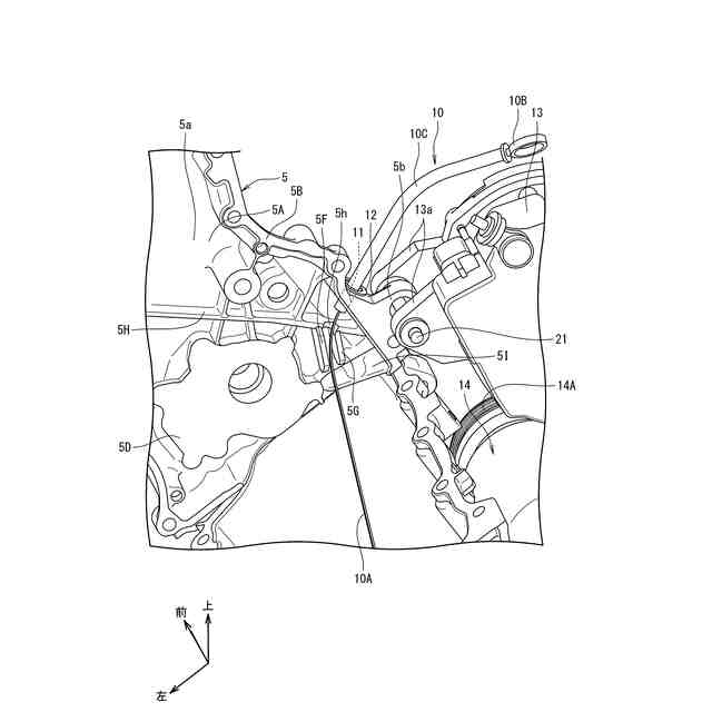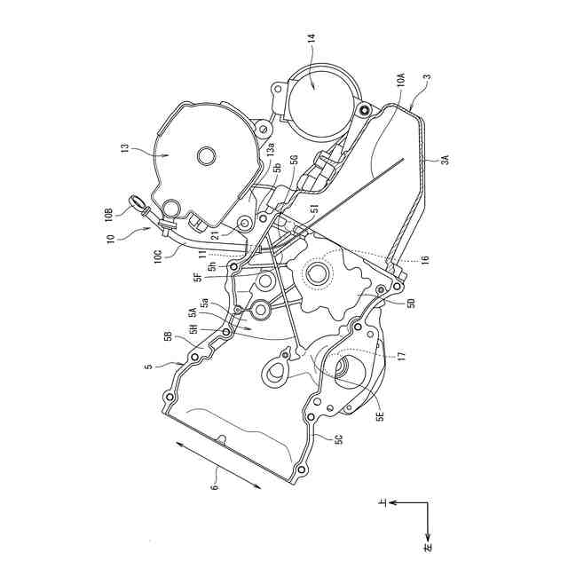 図4は、オイルレベルゲージの支持構造を備えたエンジンのチェーンカバーをシリンダブロックから取り外し、後斜め上方から見た図である。