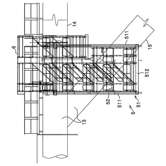 構造物の施工等において、高所で作業を行う場合には、構造物の周囲に足場を設けて作業スペースを確保する場合がある。例えば、特許文献1には、地上から屋上に向けてビルの前後左右に設置された足場が開示されている。一方、塔状構造物、橋脚、高層ビルなどの大型構造物の施工では、地上部から足場を組み立てるのに手間と費用がかかる。また、地上部に大規模な足場を構築する用地を確保できない場合がある。
