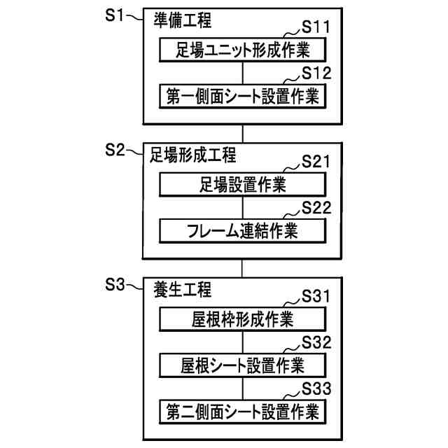 前記一対の足場ユニットの外側面を側面シートで覆う側面シート設置作業と、を行い、