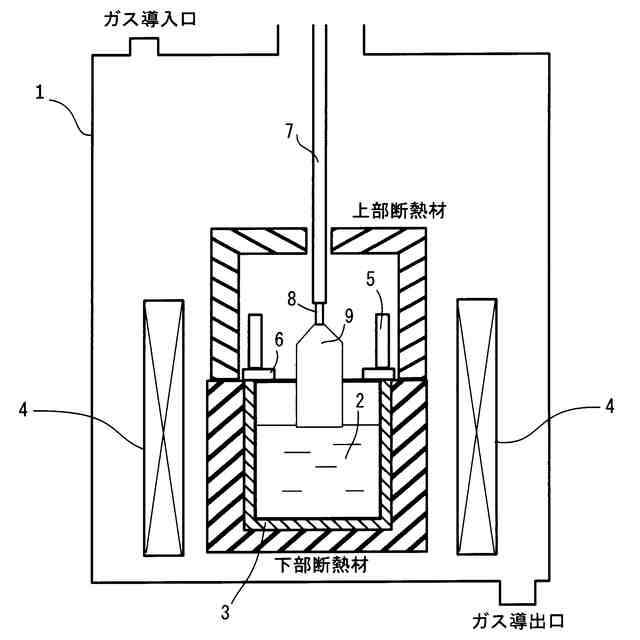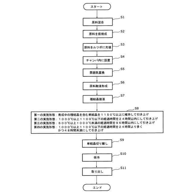 発明の詳細な説明【技術分野】 【0001】 本発明は、高性能二次電池用材料として期待され、高いリチウムイオン伝導率が得られるガーネット型固体電解質単結晶の製造方法に関する。 続きを表示(約 2,200 文字)【背景技術】 【0002】 ガーネット型固体電解質単結晶は高いリチウムイオン伝導率を示す材料であり、高性能二次電池用材料として期待されている。材料の種類としては、LLZ(Li 7 La 3 Zr 2 O 12 )、LLZT(Li (7-x) La 3 Zr (2-x) Ta x O 12 )、LLZN(Li (7-x) La 3 Zr (2-x) Nb x O 12 )、LLZTN(Li (7-x-y) La 3 Zr (2-x-y) Ta x Nb y O 12 )、LGaLZ(Li (7-x) Ga c La 3 Zr 2 O 12 )、LALZ(Li (7-3x) Al x La 3 Zr 2 O 12 )、LLTO(Li 5 La 3 Ta 2 O 12 )、LBLT(Li 6 BaLa 2 Ta 2 O 12 )など様々であり、これらの単結晶はフローティングゾーン(FZ)法またはチョクラルスキー(CZ)法で製造できることが知られている(特許文献1~6参照)。 【0003】 しかしながら、これまでに報告されているこれらの単結晶は、最大でも直径10mm程度と小口径に限られており、実用化および製造コストの低減には適しておらず、単結晶の大口径化が望まれている。 【先行技術文献】 【特許文献】 【0004】 特許第6524089号公報 特許第6120346号公報 特許第6296263号公報 特許第6278433号公報 特許第6667182号公報 特許第7361299号公報 【発明の概要】 【発明が解決しようとする課題】 【0005】 本願出願人は、大口径単結晶を低コストで製造するには、量産性に優れ、高品質な単結晶の製造法として知られているCZ法が優位であると考え、CZ法により直径25mm以上のガーネット型固体電解質単結晶の育成を試みてきた。しかしながら、育成中の結晶の落下や、育成した単結晶の変質およびクラックの発生などの事象が発生し、直径25mm以上の単結晶を得ることは極めて困難であるという課題があった。 【0006】 この課題を解決するために本願出願人が鋭意研究を行った結果、ガーネット型固体電解質単結晶の育成において、結晶が大口径化すると上記事象が生じる要因が、大口径化による育成時間の増大と、育成時の単結晶の経験温度帯および経験時間に依存していることが実験によって明らかになった。具体的には、本願出願人は、ガーネット型固体電解質単結晶を様々な温度と時間で熱処理する実験を行い、特定の温度帯および経験時間によって単結晶が変質および脆化することを明らかにした。 【0007】 単結晶の大口径化によって育成時間の増加が避けられないことは自明であるが、これにより、育成中の単結晶が変質する温度帯を長時間経験することになり、その結果として、前述の事象が生じて大口径化が実現できないことを、本願出願人は突き止めた。 【0008】 本発明は、このような事情の下になされたものであり、その目的は、CZ法による大口径ガーネット型固体電解質単結晶の育成において、育成中の結晶の落下、育成した単結晶の変質およびクラック発生の原因を特定し、これらの問題を解決して単結晶の大口径化を可能とするガーネット型固体電解質単結晶の製造方法を提供することにある。 【課題を解決するための手段】 【0009】 前述した課題を解決するためになされた、本発明に係るガーネット型固体電解質単結晶の製造方法は、チョクラルスキー法により、ルツボ内の原料融液から単結晶を引き上げて育成するガーネット型固体電解質単結晶の製造方法であって、種結晶を含む育成中のガーネット型固体電解質単結晶を1150℃以上に維持して引き上げるステップと、原料融液から前記ガーネット型固体電解質単結晶を切り離して徐冷するステップと、を含むことに特徴を有する。 【0010】 または、前述した課題を解決するためになされた、本発明に係るガーネット型固体電解質単結晶の製造方法は、チョクラルスキー法により、ルツボ内の原料融液から単結晶を引き上げて育成するガーネット型固体電解質単結晶の製造方法であって、種結晶を含む育成中のガーネット型固体電解質単結晶が1000℃以上1100℃以下の範囲となる経験時間を24時間以内にして引き上げるステップと、原料融液から前記ガーネット型固体電解質単結晶を切り離して徐冷するステップと、を含むことに特徴を有する。 (【0011】以降は省略されています) この特許をJ-PlatPat(特許庁公式サイト)で参照する