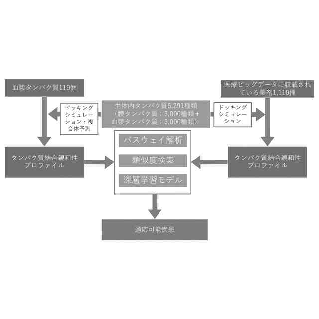 本発明者らは、上記目的を達成すべく鋭意研究を重ねた結果、薬効がわかっている薬剤と生体内タンパク質との結合親和性プロファイルと、薬効が未知の化合物と生体内タンパク質との結合親和性プロファイルとをそれぞれ作成し、これらを統合し、深層学習モデルを利用することで薬効を予想することができるという知見を得た。
