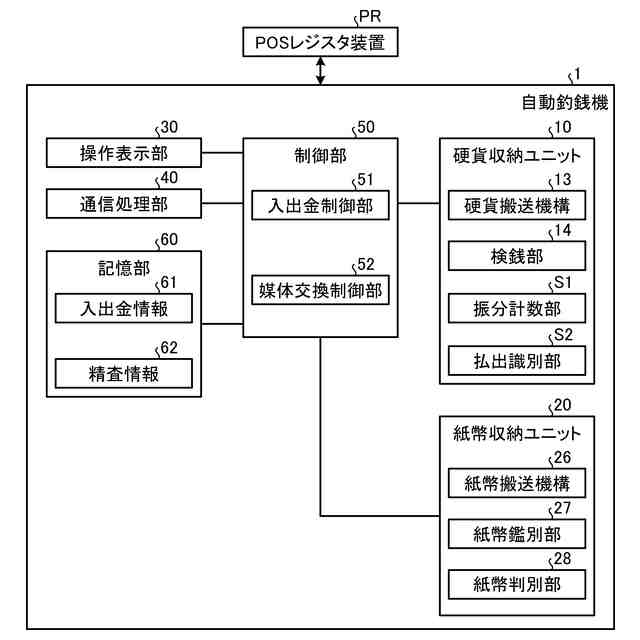【解決手段】媒体交換制御部52は、上位機であるPOSレジスタ装置PRまたは自動釣銭機1の操作表示部30からの指示により、媒体交換モードに移行し、該媒体交換モード中に、投入された媒体を識別して収納する一方、同一額面の媒体を既に出金用の収納庫に収納済みの媒体の中から出金し、かつ投入した媒体は、出金せずに自動釣銭機1内に退避させて媒体交換を行う。