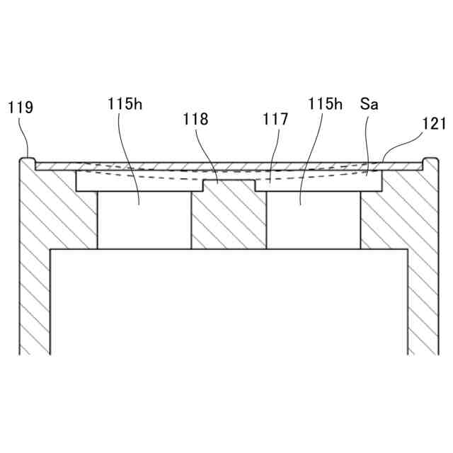 前記凹部領域の中央部に、前記凹部領域の底面から前記シート部材の側に向かって突出した突起部が形成されており、前記突起部と前記シート部材との間の距離は、前記凹部領域の底面と前記シート部材との間の距離よりも短くてもよい。