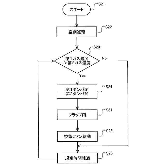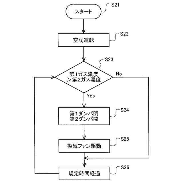 冷房運転又は暖房運転である空調運転において、前記第1センサの検出する腐食性ガスの濃度が前記第2センサの検出する腐食性ガスの濃度よりも高い状態となった場合、
