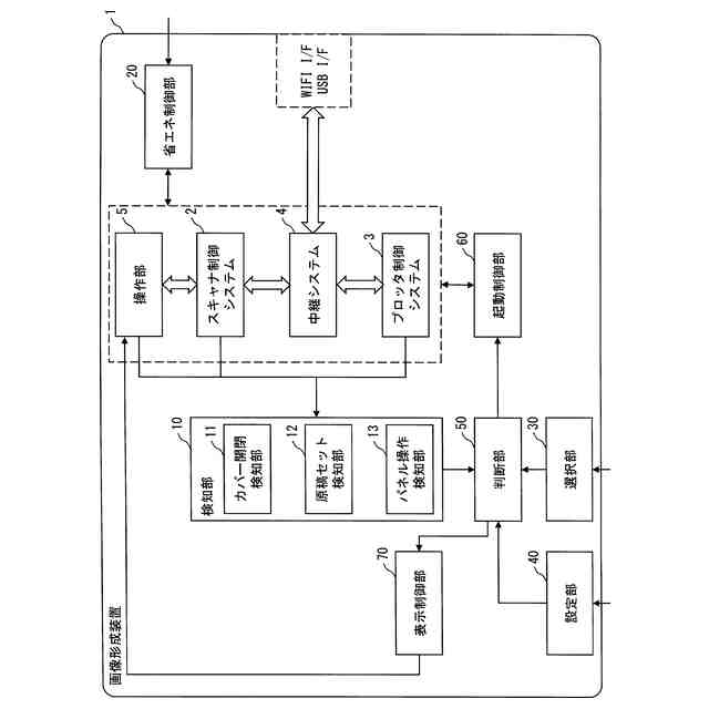 画像形成装置において、カバーの開閉や原稿・印刷用紙セット等のトリガを元に、省エネルギーでの動作から復帰させる部分を決定する技術がある。