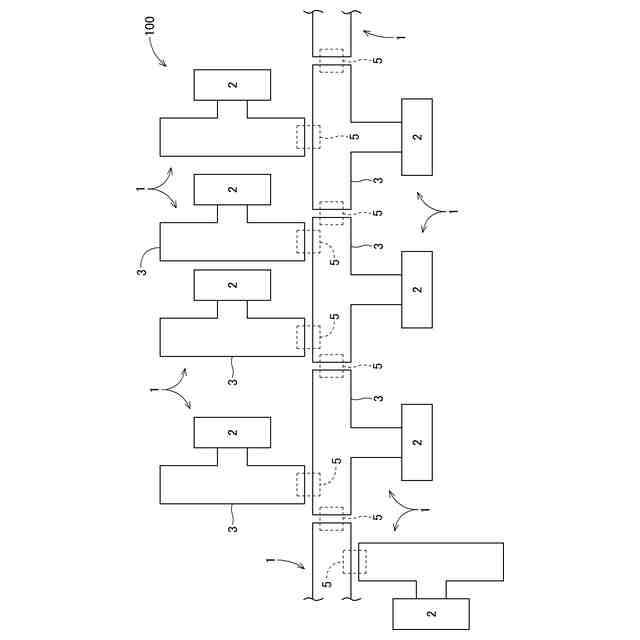 上記のように同期システムを備える場合、同期を取るための同期制御回路が必要である。誘導線路を多く備えた大規模は設備では、同期制御回路も当然ながら多く必要であり、回路規模が増大すると共に設置スペースも増大する。また、同期を取るためのクロックパルス信号は、上記の例のような光伝送装置や、有線LAN(Local Area Network)装置などによって伝送されるが、光ケーブルやLANケーブルなどの総延長距離も長くなり、ケーブルコストが増大すると共にケーブルの設置スペースも増大する。従って、電源設備は、コストとのバランスも考慮して構成されることが好ましい。乗り継ぎ区間における問題には、上記の通り、移動体への給電と、干渉電力とがある。この内、移動体への給電に関しては、移動体に搭載される受電回路を進行方向の前後に分けて複数設けることや、移動体に一時的な電圧低下を吸収できるようなバッテリやキャパシタを搭載することによる対処も可能である。しかし、干渉電力に関しては、電流に位相差がある場合には避けがたい。