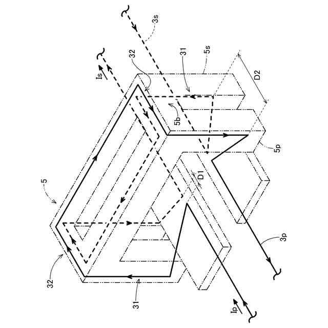 前記第1給電線の前記第2区間を流れる電流の向きに対する前記第2給電線の前記第2区間を流れる電流の向きと、