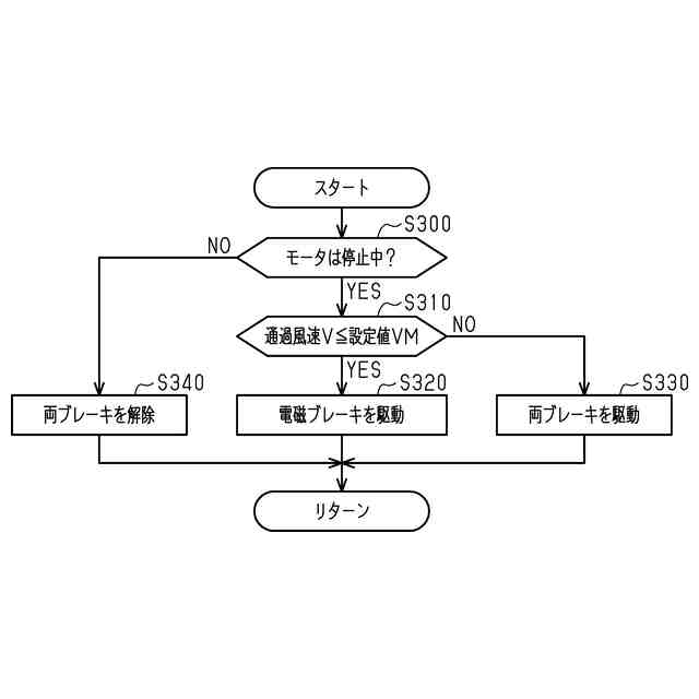 前記モータに加え、前記モータの出力軸に対して制動力を付与する電磁式の電磁ブレーキと、前記タワーに対する前記ナセルの相対回転に対して制動力を付与する流体圧力式の摩擦ブレーキとを制御対象とし、