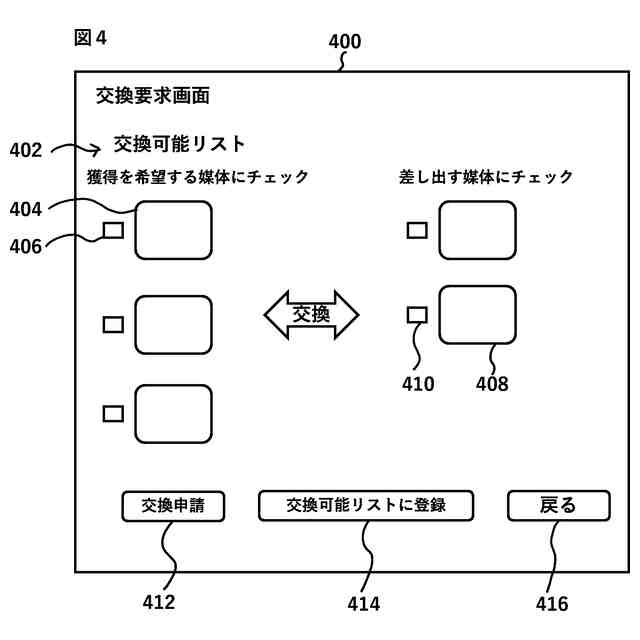 前記プロセッサは、前記第2ユーザが承諾しなかった場合に、前記交換可能リストに、前記第1ゲーム媒体を追加する、