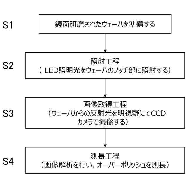 特許文献1に記載の光学条件では、オーバーポリッシュの定性的な観察はできても、円環状の画像を長方形画像に補正しているので、画像からの正確な測長が難しい。また、ノッチ部近傍の暗視野画像でオーバーポリッシュの痕跡が観察されている例が記載されているが、オーバーポリッシュの長さの定量解析方法は開示されていない。規格よりも内側にオーバーポリッシュが入りこむと、デバイス工程で歩留まりに影響を及ぼす可能性があるため、定量的な評価が必要である。