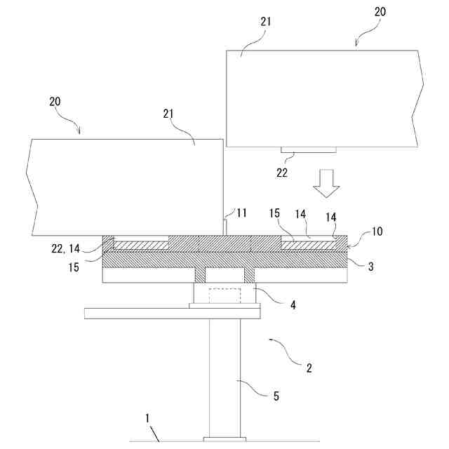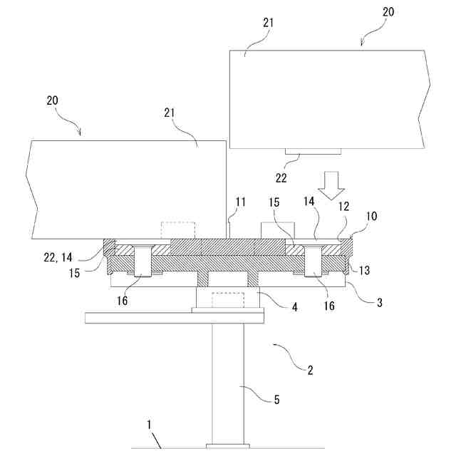 図面に示すように、この実施例では、板状パネル受け部10は、上面視正方形の板体で形成され、非磁性体材料、例えば、樹脂材料等から成る。