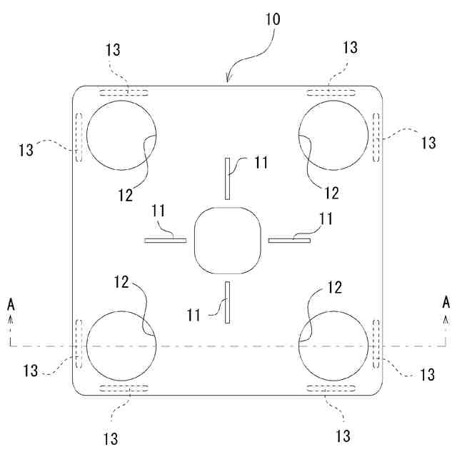 図2は、図1に示した床構造に用いられる板状パネル受け部10の一実施例の上面図、図3は、図2に示した板状パネル受け部2のA-A断面図である。