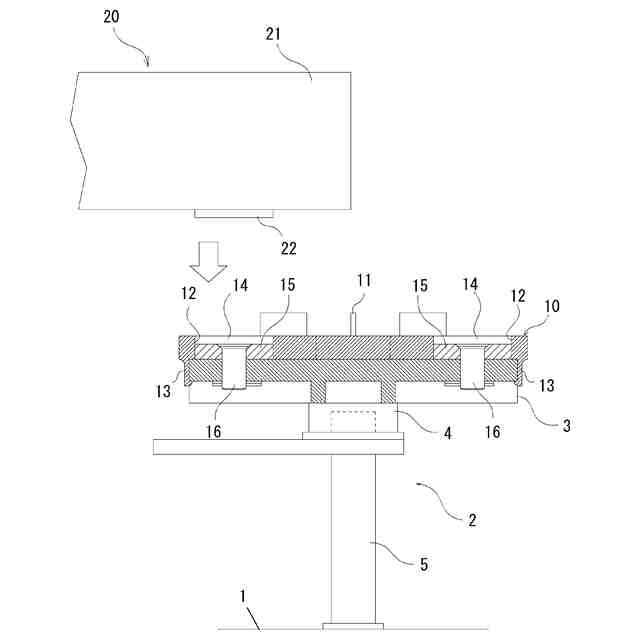 また、前記磁石15は、中心に貫通孔を有するドーナツ形の円筒状磁石であり、ビス16を用いて支持脚2の上部支持板3に固定される(図5参照)。