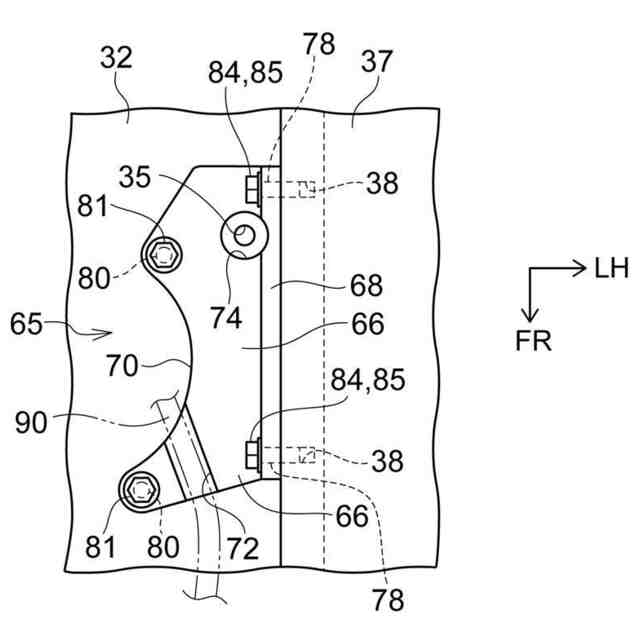 しかし請求項1のハイブリッド車両駆動用ユニットは、第2ケース又は第2接続部と、エンジン又は第1接続部と、に接続される金属製のスチフナを備える。この場合、スチフナが第2ケース又は第2接続部と、エンジン又は第1接続部と、に接続されることにより、接続されない場合と比べてハイブリッド車両駆動用ユニットの剛性が高くなる。即ち、スチフナが第2ケース又は第2接続部と、エンジン又は第1接続部と、に接続されることにより、接続されない場合と比べてハイブリッド車両駆動用ユニットの上下方向の曲げ振動の共振周波数が高くなる。そのため請求項1のハイブリッド車両駆動用ユニットは、ハイブリッド車両駆動用ユニット固有の共振周波数より低い周波数で振動する装置に起因してハイブリッド車両駆動用ユニットに大きな上下方向の曲げ振動が発生するおそれを、スチフナを利用して低減できる。