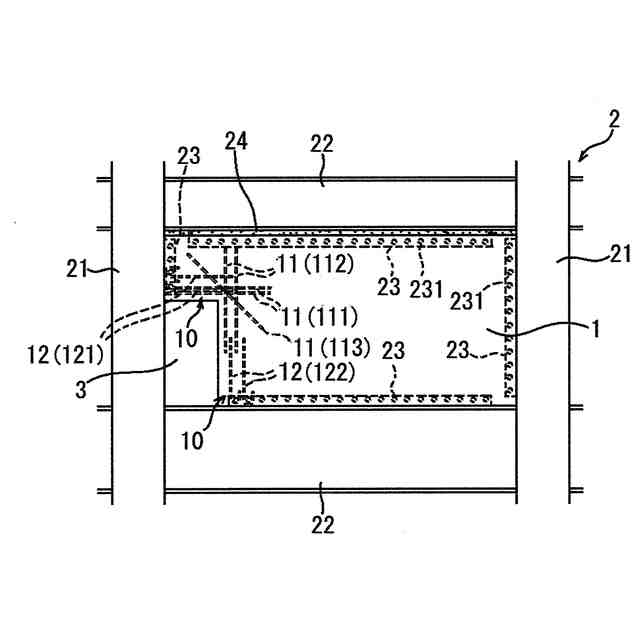 フレームが鉄骨造になると、開口補強筋をフレームの鉄骨梁や鉄骨柱に定着することが難しく、このようなケースでもRC耐震壁をフレームに強固に接合し、RC耐震壁のフレームからの浮き上がりを防止できる方法が求められていた。