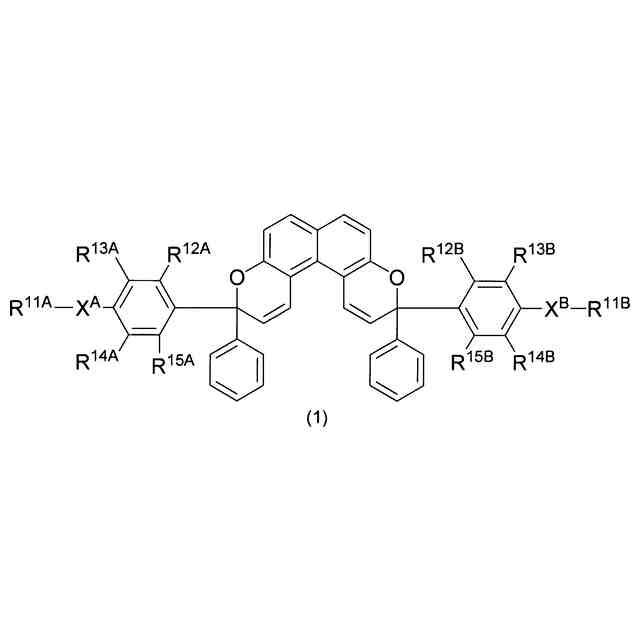 フォトクロミック化合物は、光の照射により発色し、光の照射を止めると消色する可逆的な光変色機能(以下、「可逆光変色機能」と表すことがある)を有するものである。すなわち、光の照射の有無により、フォトクロミック化合物は消色した状態(以下、「消色状態」と表すことがある)から、発色した状態(以下、「発色状態」と表すことがある)へ可逆的に変化する。また、光の照射による発色後に加熱することによっても消色する特徴を有する。