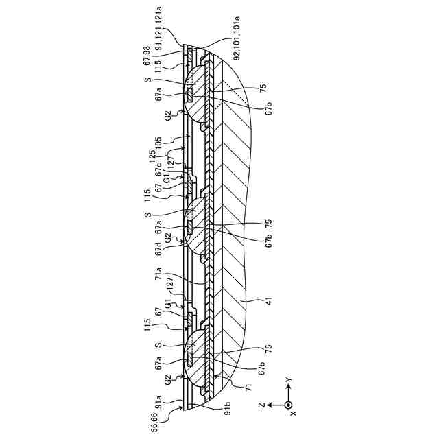 前記ベース層は、前記第1の配線を覆う第1のベースと、前記第2の配線を覆う第2のベースと、それぞれが前記第1のベースから突出して前記接続端子を部分的に覆うとともに前記第2のベースから離間した少なくとも一対の第1の突出部と、それぞれが前記第2のベースから突出して前記接続端子を部分的に覆うとともに前記第1のベース及び前記一対の第1の突出部から離間した少なくとも一対の第2の突出部と、を有する、
