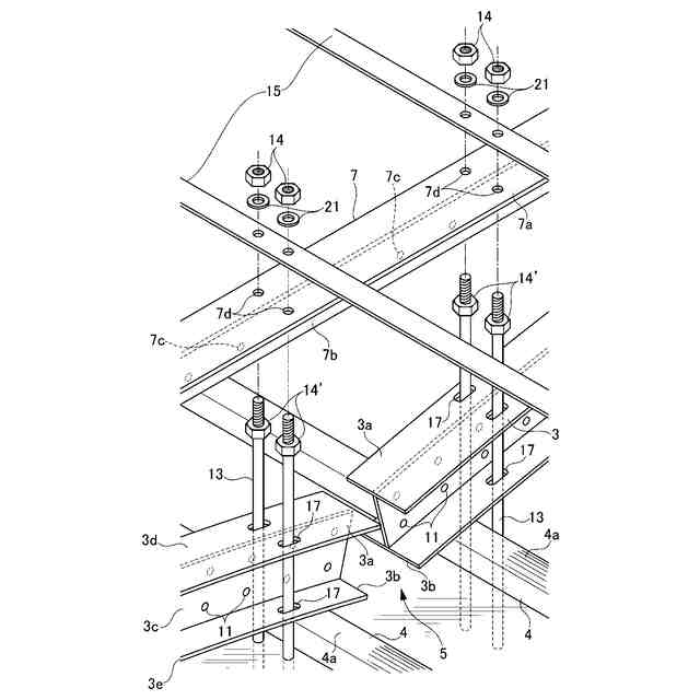 図1(A)に示すように、一般的な複径間桁橋は橋長に応じて両岸の橋台1間に単数又は複数の橋脚2を設け、H形鋼等の鋼材製又はプレストレストコンクリート製の複数本の主桁3を橋台1と橋脚2間、橋脚2と橋脚2間にそれぞれ橋幅方向に並列して架け渡し、共通の橋脚2上に支承6を介して左径間を構成する主桁3と右径間を構成する主桁3の各桁端3aを支持する構成となっている。