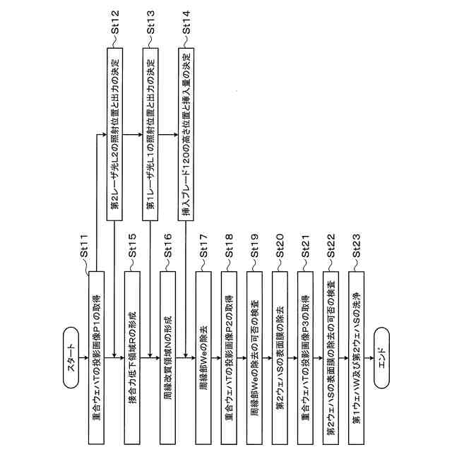前記周縁部が正常に除去された後の、前記第1基板の基準形状を記憶する制御と、