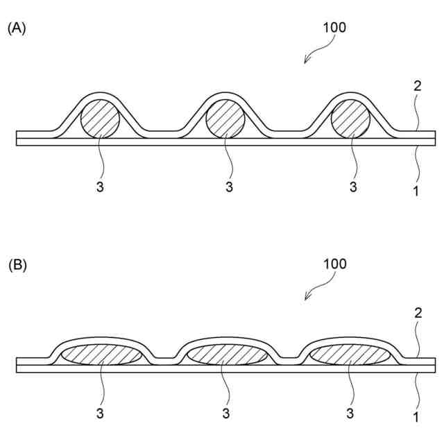 より具体的には、電池の周囲の圧力を低下させると、電解液の注液口を封止する封止フィルムが電池の外側に向かって突き出すように変形する。この封止フィルムの変形によって内圧検査シートが加圧され、表示用物体が変形する。表示用物体の変形の度合いは視認可能であるため、変形した表示用物体の状態を目視で観察することによって、検査対象の電池の内圧の状態を判断することができる。