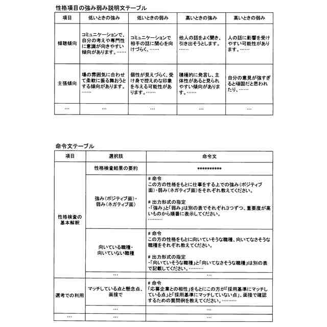 採用担当者は、求職者の適性検査結果を踏まえて、採用面接等を行うことが多い。その際、各求職者の性格等を考慮して面接することが重要であり、求職者に対して誤った接し方を行うと求職者の入社意欲の低下を招き、優秀な人材の採用機会を逃す虞がある。よって、適性検査結果から分かる求職者の性格特性を把握した上で採用活動(例えば面接)を行う必要があり、採用担当者は、採用活動を行う際の注意点、求職者の性格特性に関する詳細な説明を要望することが考えられる。しかし、特許文献1に開示の技術では、適切に設定された採用基準に各求職者が合致しているか否かを判断することは可能であるが、上述した要望に応えることが困難である。