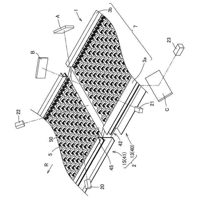 配送場等で取り扱われる搬送物の種類は多岐にわたる。即ち、配送場等で取り扱われる搬送物は、大きさや形状がまちまちである。またバーコード等が付された位置もまちまちである。そのためコンベヤ装置に搬送物を載せる際に、バーコードがセンサーに対向する様に搬送物の向きをそろえる必要がある。仮にバーコードの位置がセンサーに対向する面に向いていなければ、センサーでバーコードを読み取ることができない。