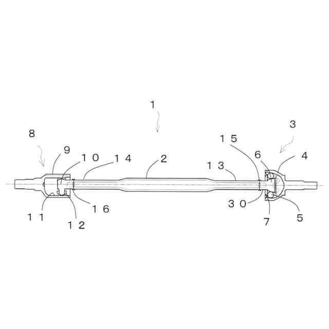 自動車の駆動系に使用されるドライブシャフトは、固定式等速自在継手と摺動式等速自在継手が、中間シャフトの両端に取付けられる構造が一般的である。最近では、軽量化および回転慣性の減少のために、中間シャフトを中空化することがある(例えば、特許文献1)。