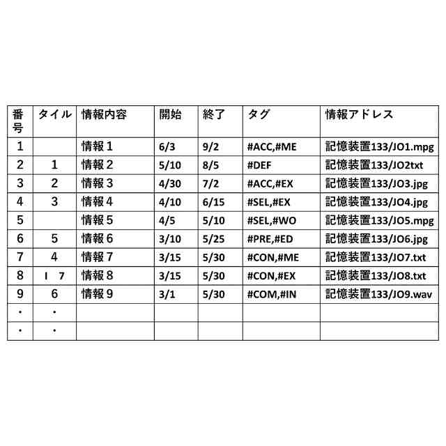 本発明のユーザ画面に表示されるタイルに関連付けられるデータ構造の一例を示す図である。